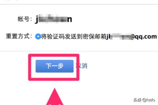 3、此时进入重置密码过程中的验证方式,重置密码的邮件会直接发送到我们注册时绑定的邮箱中,确认信息无误,点击页面中的“下一步”按钮进入下一步。
