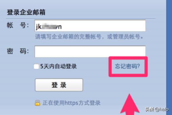 1、打开QQ企业邮箱的登录界面,输入我们的账号和密码,如果依旧无法登录,找到登陆框下方的“忘记密码”按钮并点击进入下一步。