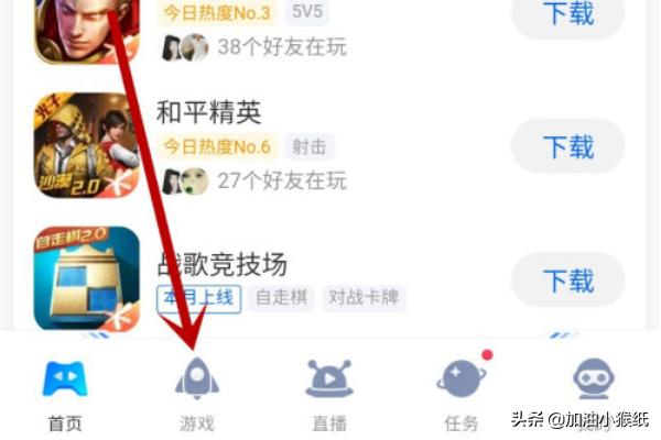 3、点击底下的【游戏】来找寻感兴趣的游戏下载。