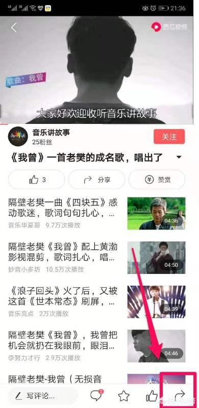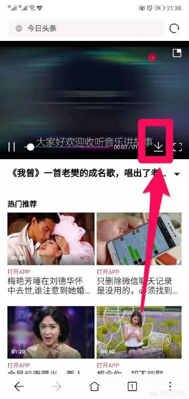 2、进入到今日头条,随意打开一个歌曲视频,然后点击下方的“向右箭头”。
