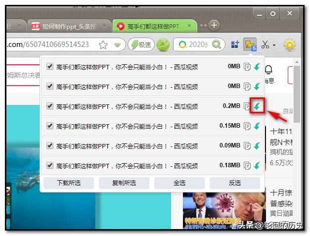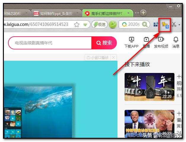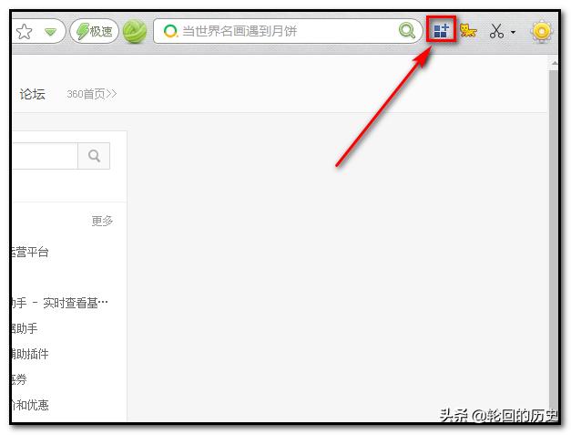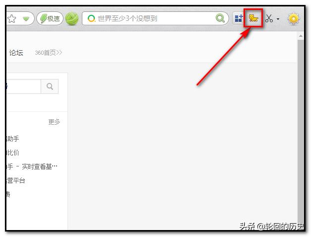 1、“视频下载神器”是360浏览器的一个插件,所以我们需要打开360浏览器,然后点击下图红色箭头所指方框位置的图标。