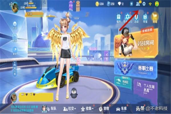 1、在QQ飞车手游首页,点击【设置】按钮