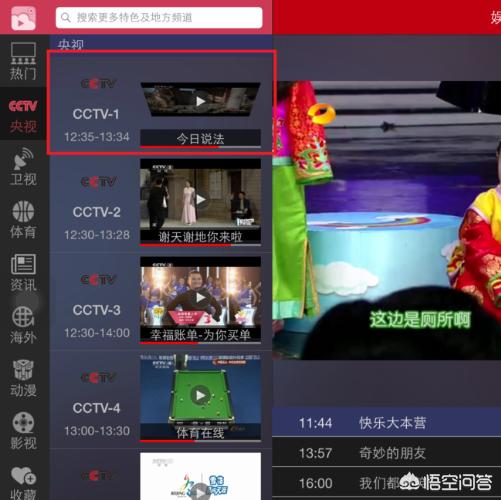 3、打开首页就可以看到,在软件左边菜单有很多的电视台可以供选择。要选择一个想要看的电视频道。