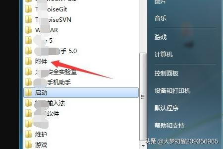 2、点击所有程序后,可以看到电脑上面安装的所有应用,我们选择其中的“附件”,如图所示。