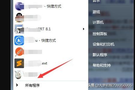 1、首先,点击左下角的“开始”按钮,会弹出一个功能菜单,我们选择其中的“所有程序”,如图所示。