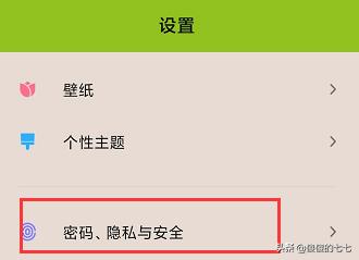 1、打开手机设置,点击密码隐私安全。