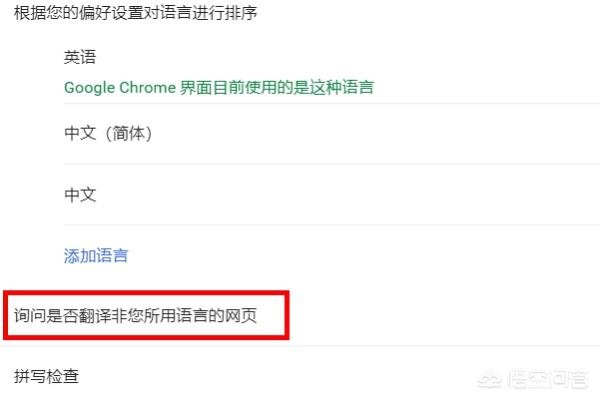 5、看到“询问是否翻译非您所用语言的网页”,如下图红框所示。