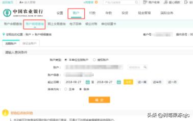 4.查账:选择“账户”--“账户明细查询”,输入起始日期,查询交易记录,或者“账户”--“余额查询”查询账户的余额。