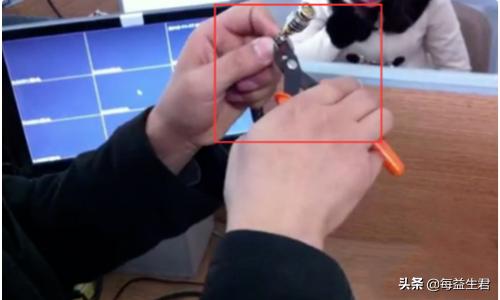 6、把BNC线拿出来头上的一小截削出中间铜线。