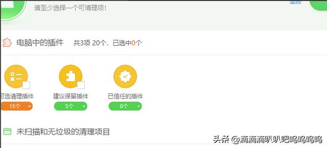 2、我们找到电脑中的杀毒软件,然后点击电脑清理,在电脑清理页面里面有清理插件的选项,然后我们点击扫面插件,然后软件会找到所有的插件,然后我们把换肤大师的插件清理了就可以了。