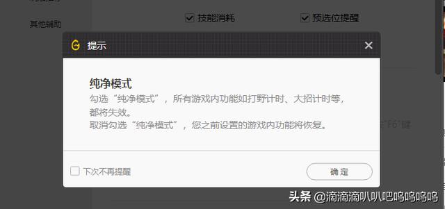 4、我们打开wegame,然后点击辅助设置,然后点击左下角的纯净模式,打上勾之后我们再玩游戏里面就没有任何插件了。包括战局信息和野怪的刷新,技能加点等都没有了。