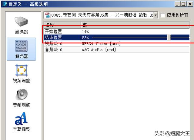 8、点击左则的"解码器",我们可以在右则设置视频的开始及结束位置