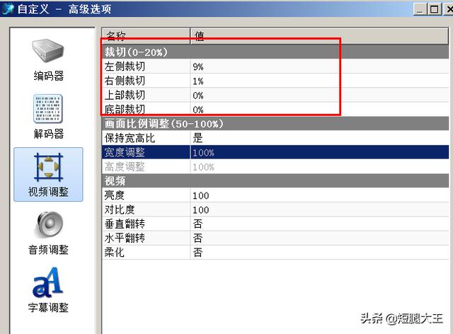 10、点击"视频调整",我们可以对视频的栽切进行设置,也就是可以只让视频的一部分显示在我们要转换的视频中