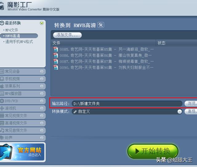 13、输出路径可以通过点击"浏览"进行设置,这里是控制电影的输出目录的