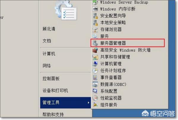 1、首先打开服务器中的开始菜单,然后选中管理工具->服务器管理器,如下图所示。