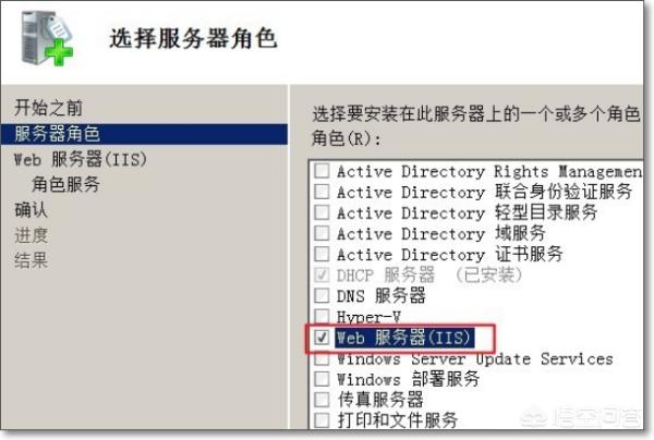 4、勾选要安装的服务器,Web服务器,如下图所示。