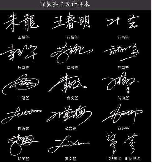 要想设计好签名,就要知道艺术签名有哪些签法或者构造方法。总结如下:一笔签名法、花式签名法、仿英签名法、写意形象签名法、造型签名法(心形签、蝴蝶签、人物造型签,等等)、合文签名法、中规签名法(商务签、楷书签等)、防伪签名法、竖式签名法。有些签名,只是不同设计师对同一种手法的称呼不同而已,或者理解不同而已,但是本质是一致的。您必须搞明白,每一种签名技法的技巧。
