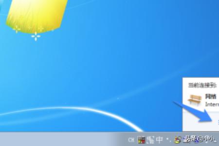 2、这里以 Windows 7 系统为例,点击屏幕右下角任务区的网络图标,如图所示