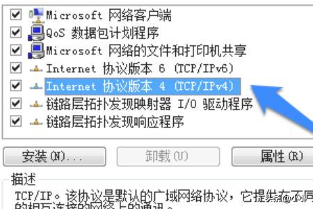 6、在网卡的属性窗口中,找到“TCP/IPV4”选项,双击打开它的属性,如图所示