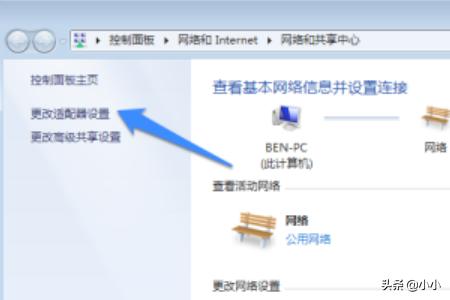 4、然后在网络设置界面中,点击“更改适配器”选项,如图所示