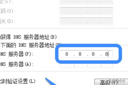8、接下来在 DNS 服务器地址一栏输入四个8,即8.8.8.8这个 DNS 服务器地址,然后点击“确定”按钮,如图所示