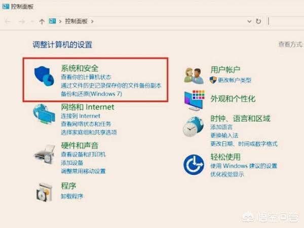 2、下一步弹出新的窗口,需要找到系统和安全并点击跳转。