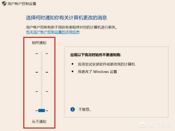 4、如果需要关闭“你要允许此应用对你的设备进行更改吗”的弹窗,则可以将【滑块】移动到第一档,再点击确定,此时再安装软件就不会再弹出“你要允许此应用对你的设备进行更改吗”的弹窗了。