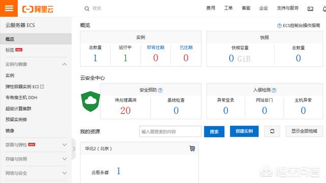 购买云端服务器,既然是学习配置也不需要那么高,一年也没多少钱,我在阿里云搞活动的时候买了台ECS主机3年199元,对我日常使用来说足够了,下面是我云ECS控制台