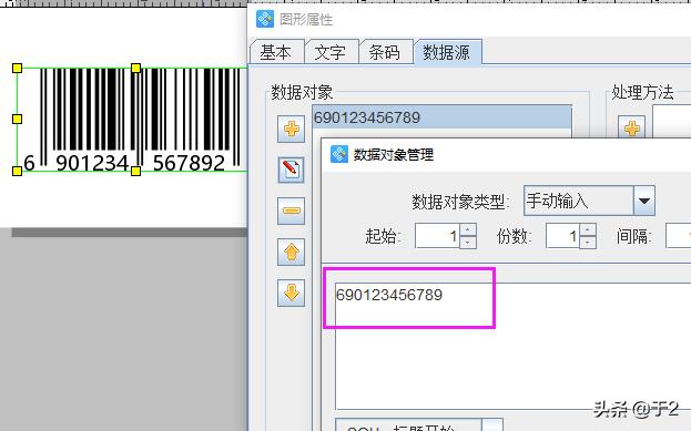 数据源中输入12位条码数据,软件会自动得出校验位,如下图