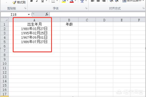 1、以excel2010版本为例,A列有一列出生年月,要用函数算出年龄;