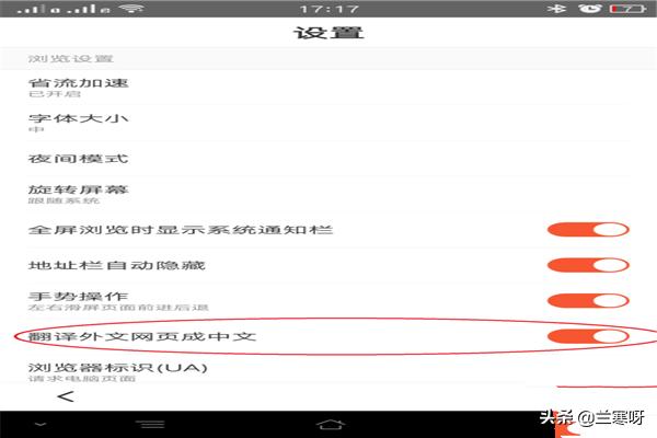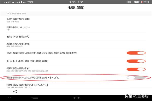 点击设置功能,进入到设置页面,找到翻译外文网页成中文,如图