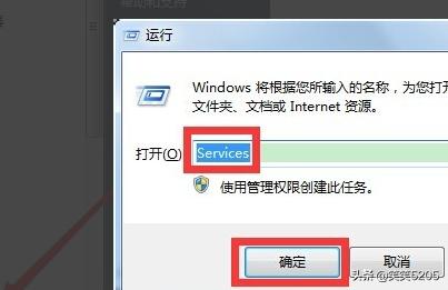 2、在打开的“运行”窗口中,输入“Services”并按“确定”即可进入“服务”程序设置界面。