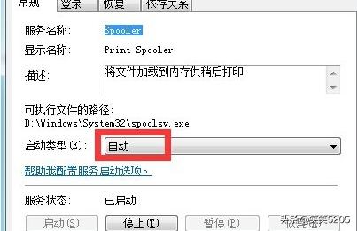 4、双击“Print Spooler”服务项,在弹出的窗口中将“启动类型”设置为“自动”,点击“确定”完成设置。