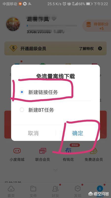 3、进入到离线下载页面以后,接下来选择【新建链接任务】与【确定】。