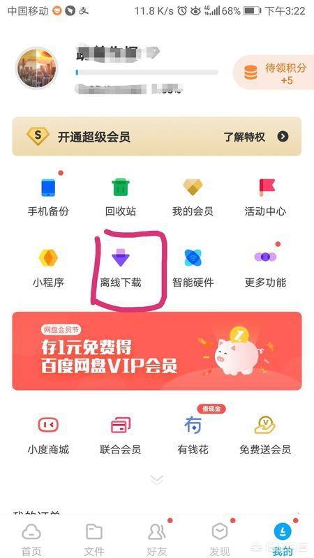 2、进入到我的页面以后,接着在弹出来的页面选择【离线下载】。