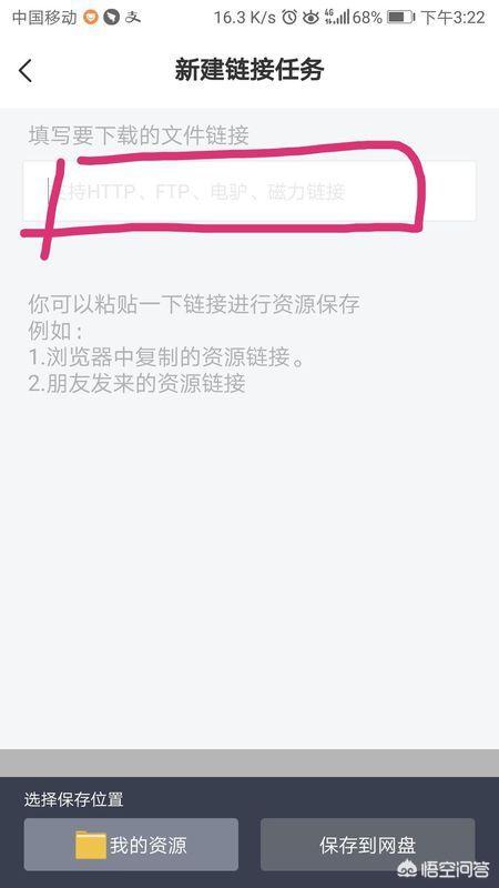 4、最后在新建链接任务的输入框中输入磁力链接就可以用链接进行下载了。
