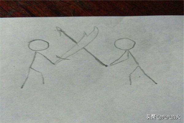 6.双方都拿上兵器,不过重点在于四肢动作的协调。(如图)