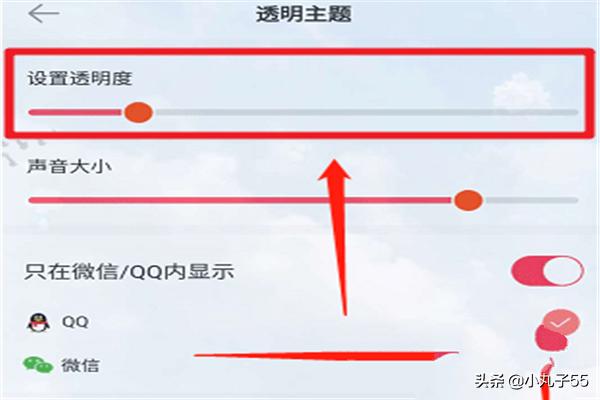 3.紧接着需要在“设置页面”调整“主题透明度”以及开启只在微信/QQ内显示按钮功能选项。