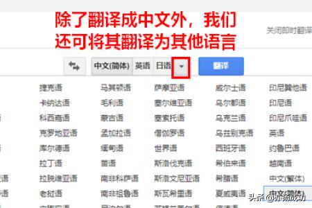 5、当然,如果你想翻译成的语言类型在导航栏上没有,也可以点击目标语言处的下拉箭头,选择一种需要翻译成的语言。