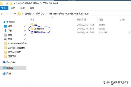 3、在文件夹下有个名为“vodcache”的文件夹,这个文件夹就是存储看过的视频的地方,打开里面会发现又很多个子文件夹,找到与你观看时间相近的文件夹就是你想找的视频缓存,打开进去可以看到有很多TDL文件,这个就是我们要操作的文件,把路径复制下来