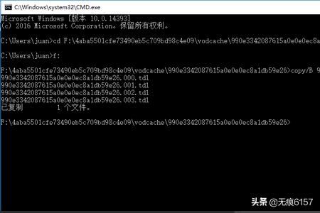 6、接着输入copy/B+空格+9*.tdl+空格+文件名.MP4就可以将qlv格式的视频转为MP4的视频了(注意:9为你tdl文件的名称的第一个字母,视频名称自己定)