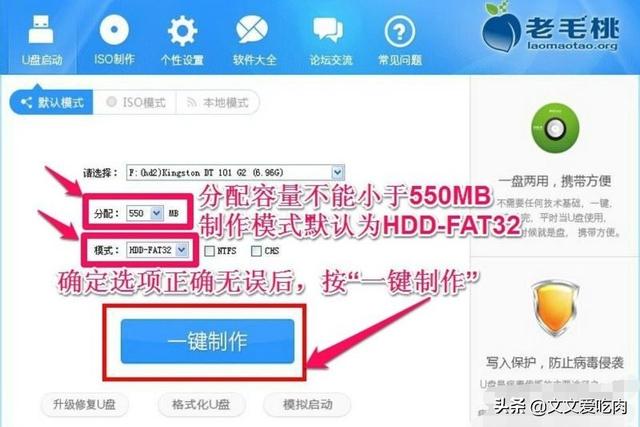 5,其它的选项,如分配,模式等,一般默认即可,如果你比较了解,可自行定义。选好后,按“一键制作”按钮。