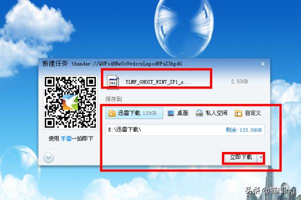 5、点击下载之后会出来迅雷的一个下载方框,你可以看到这个软件的大小,看到这个系统的文件名字等,方便进行下载。