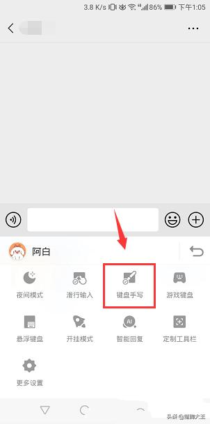 点击键盘上的设置,完后你会发现有一系列的选项,选择手写就可以了。