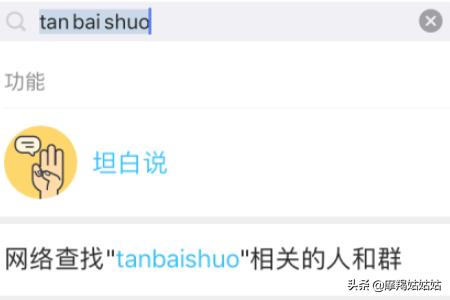 1.首先我们在手机上打开手机QQ,并在QQ主界面中上方的搜索框输入"坦白说“这一选项进行搜索,且打开进入。
