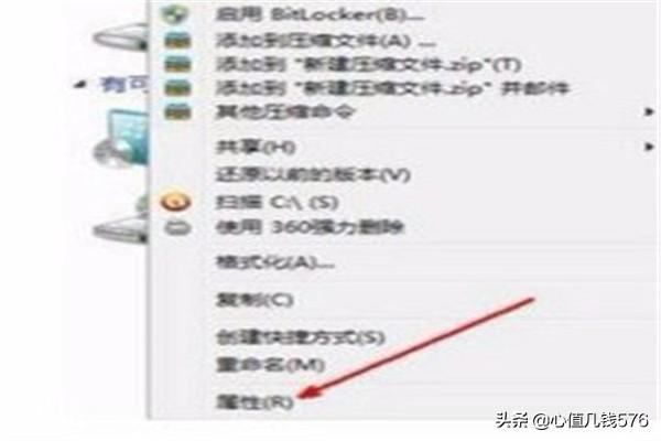 2、右击C盘,然后在弹出的菜单中选择最下面的属性,进入C盘的属性。
