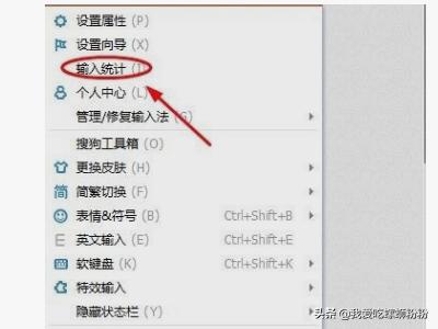 3、登录以后,右键点击输入栏,然后就会弹出一个窗口,我们选择其中的“输入统计”,然后就会弹出“个人中心”界面,如下图:
