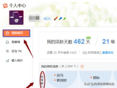 5、依旧在该页面,我们将“输入统计”切换至最上面的“我的首页”,然后就可以看到我们经常输入的那些关键词,对于的下面还有系统根据常搜推荐的接近词汇。