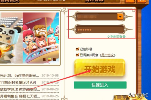 4、之后会弹出一个登录的窗口,我们输入账号和密码,然后点击开始游戏。