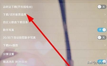 3、还有的是用酷我音乐听音乐的时候,肯定是要设置音质的,可以在列表中找到下载,试听音质设置,点一下进入。